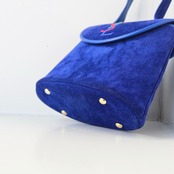 ブルーのボディが目を惹くハンドバッグ。