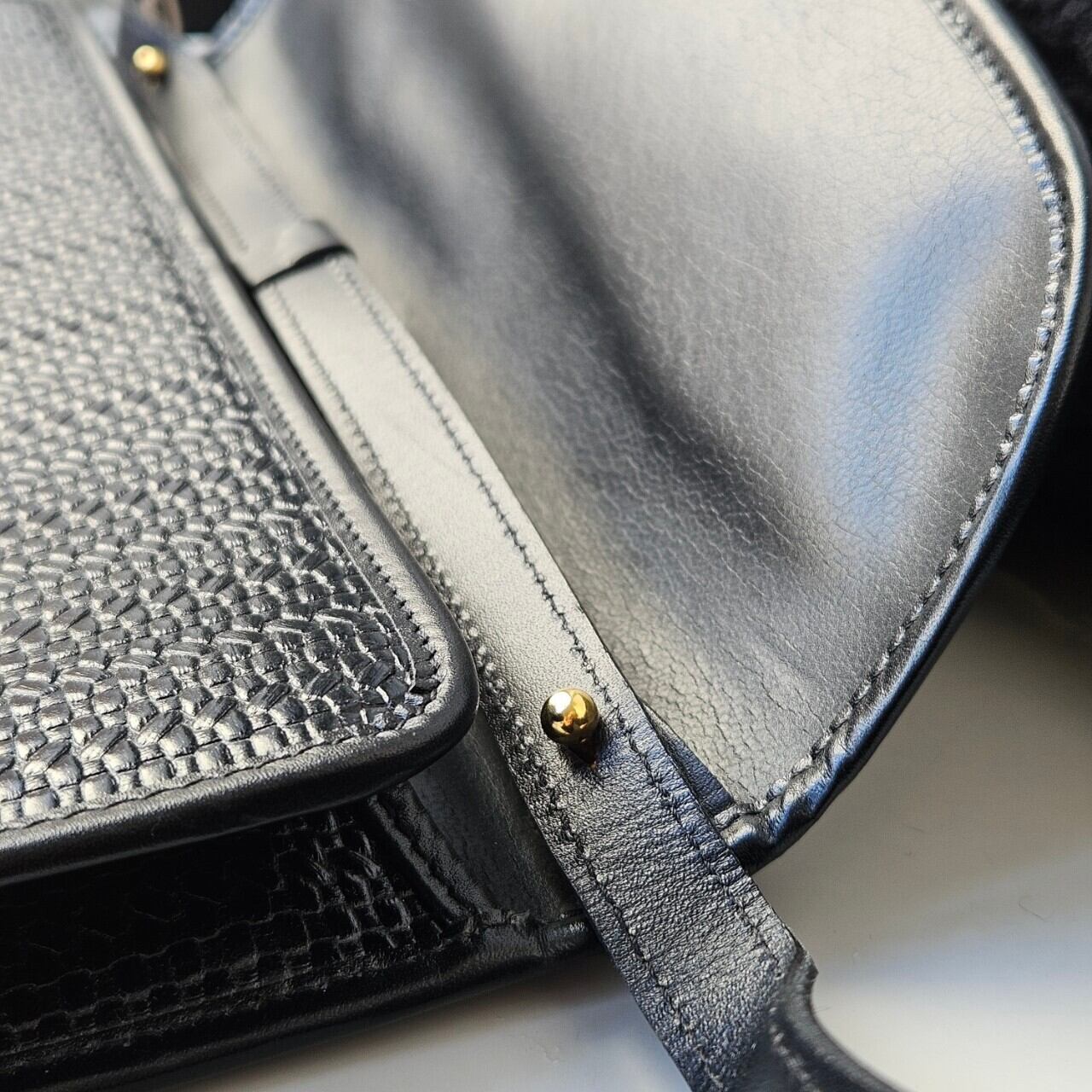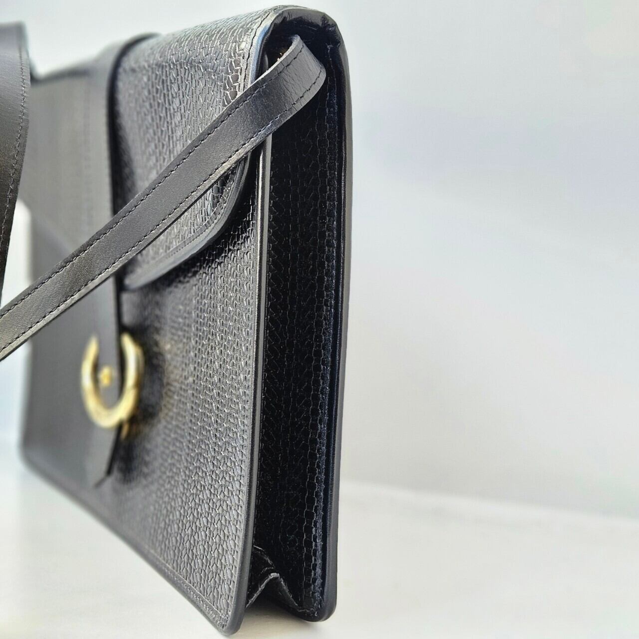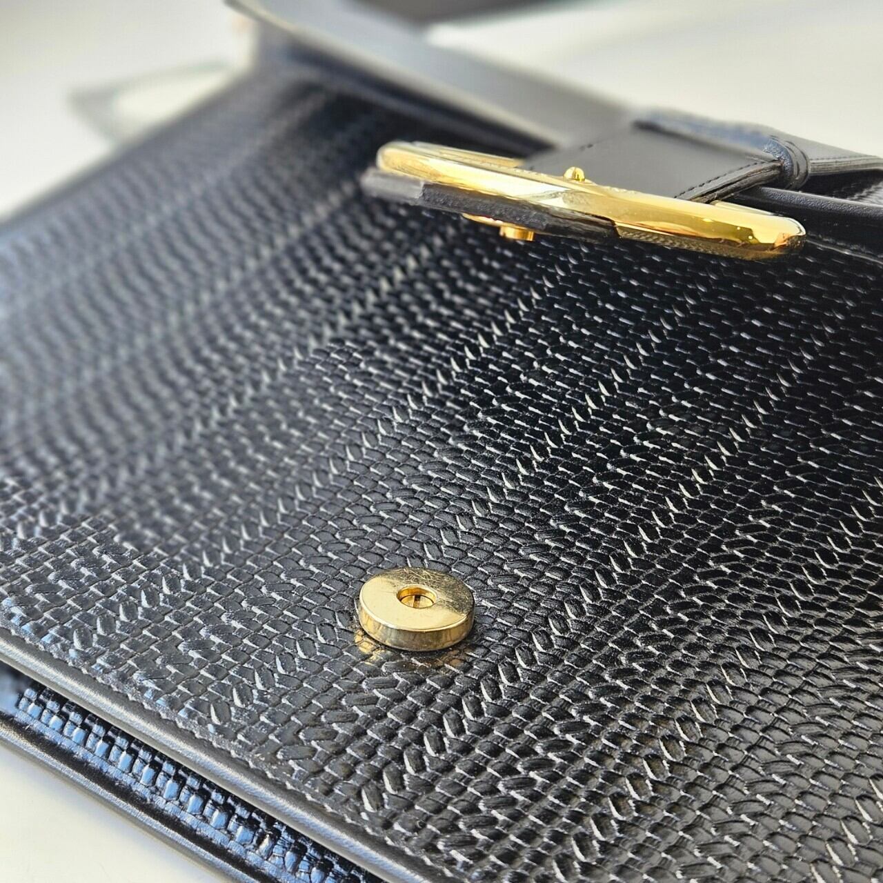 オールブラックのボディにゴールド金具の装飾がクラシカルな一品。