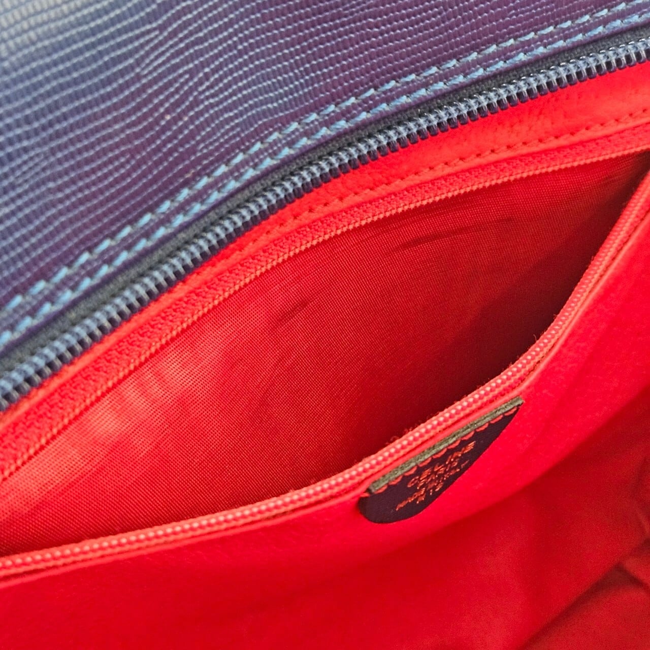 鮮やかで深みのあるボディとバッグ内部のレッドのコントラストが美しいハンドバッグが入荷。