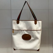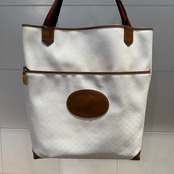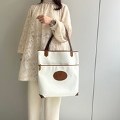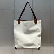 オールホワイトのボディにブラウンのレザーのコントラストが美しいトートバッグが入荷。
