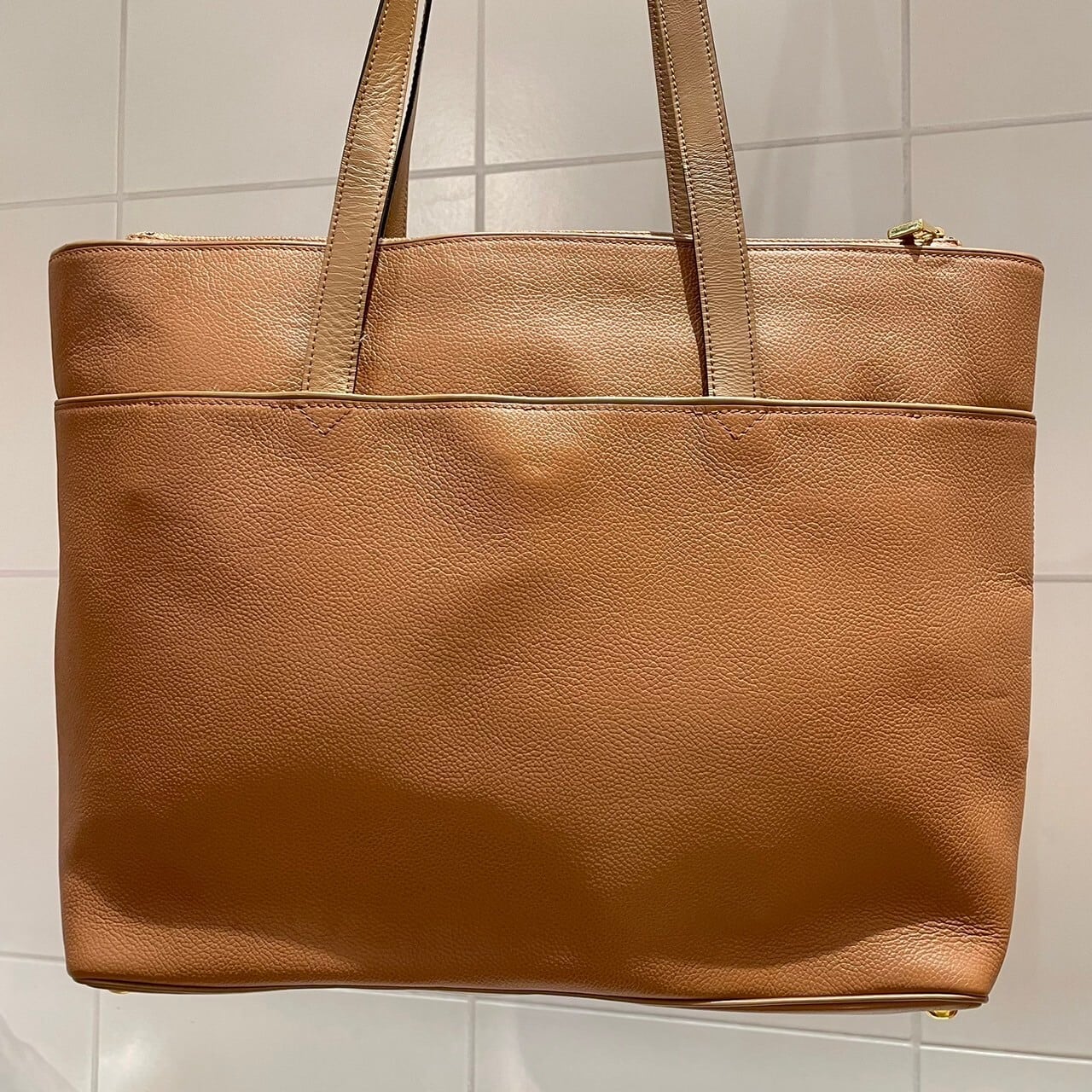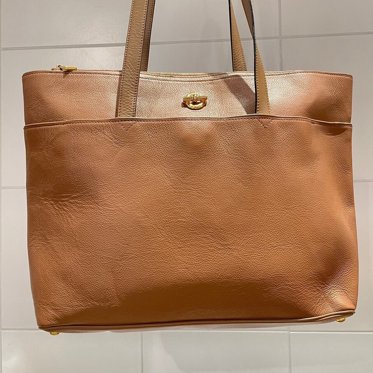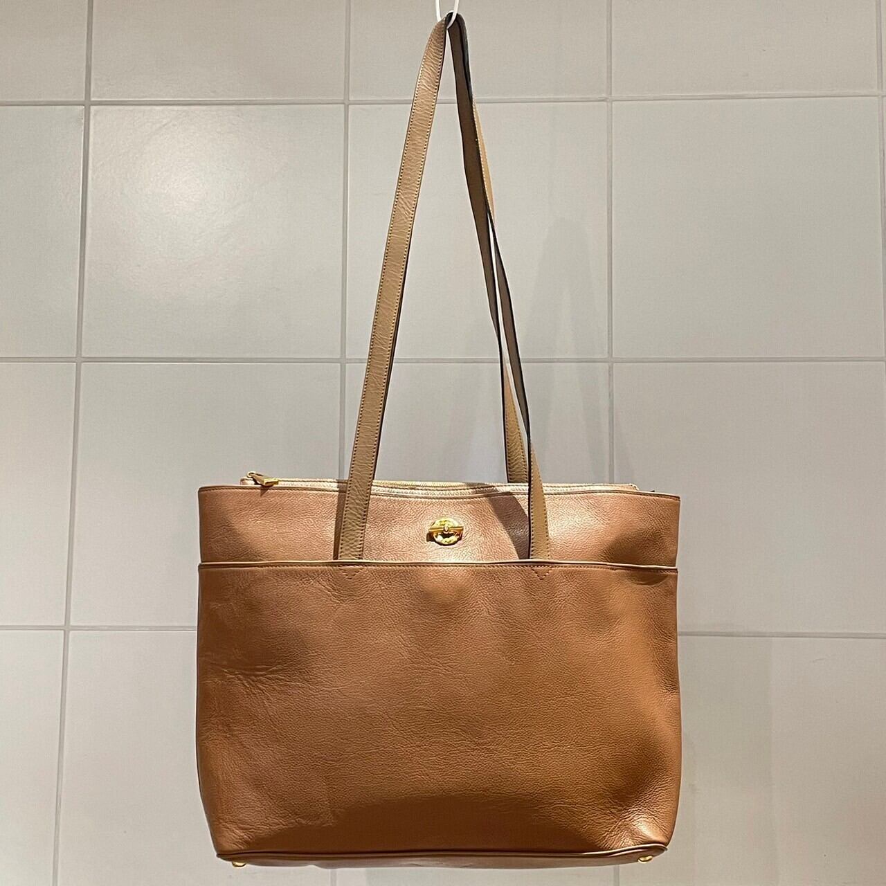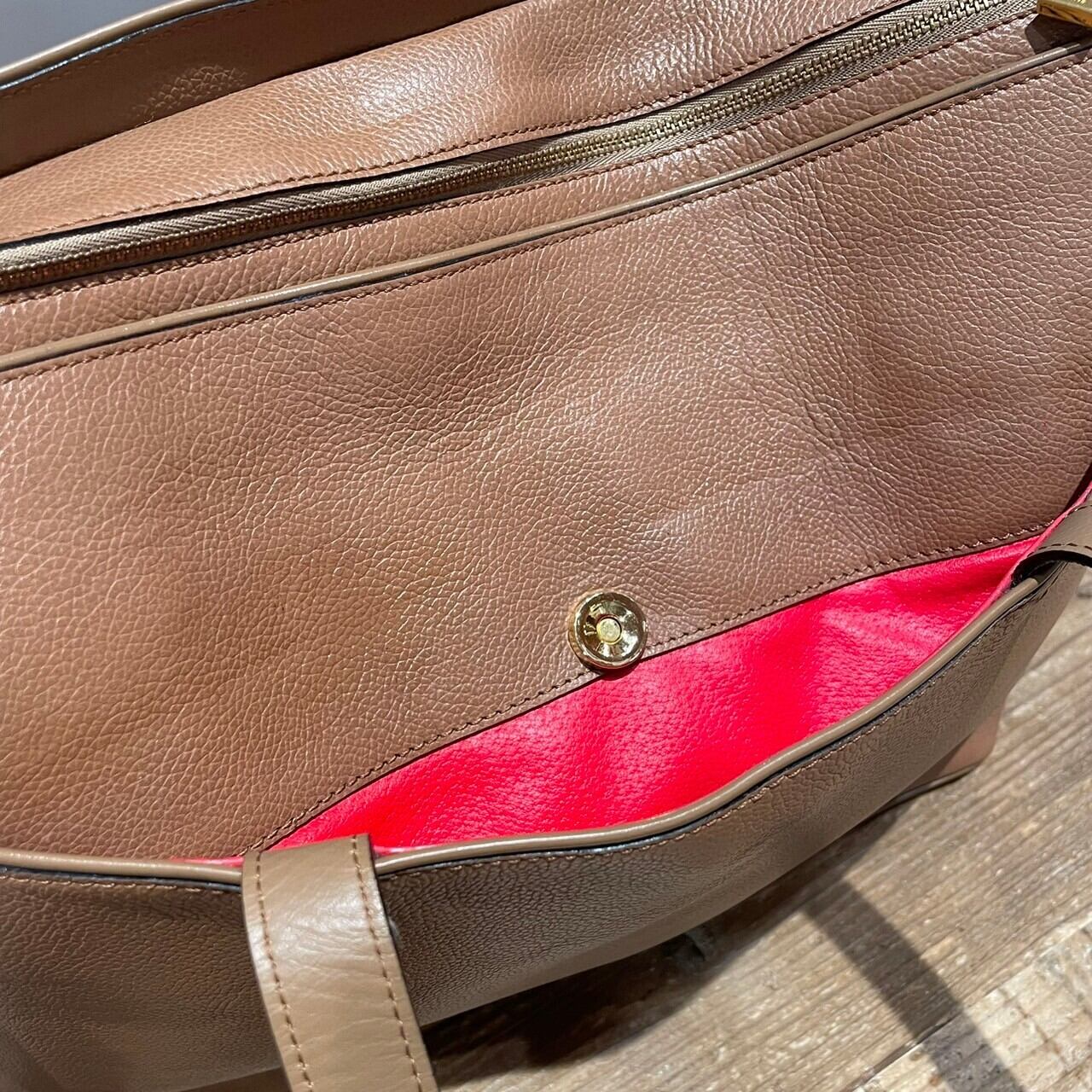 柔らかなブラウンのボディとバッグ内部のレッドのコントラストが美しいハンドバッグが入荷。