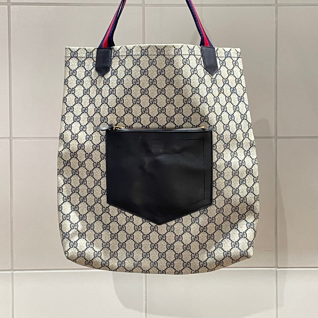 ハンドル部分にはシェリーライン、フロントには大きなポケットが施されたGUUCIらしさを感じる一点です。