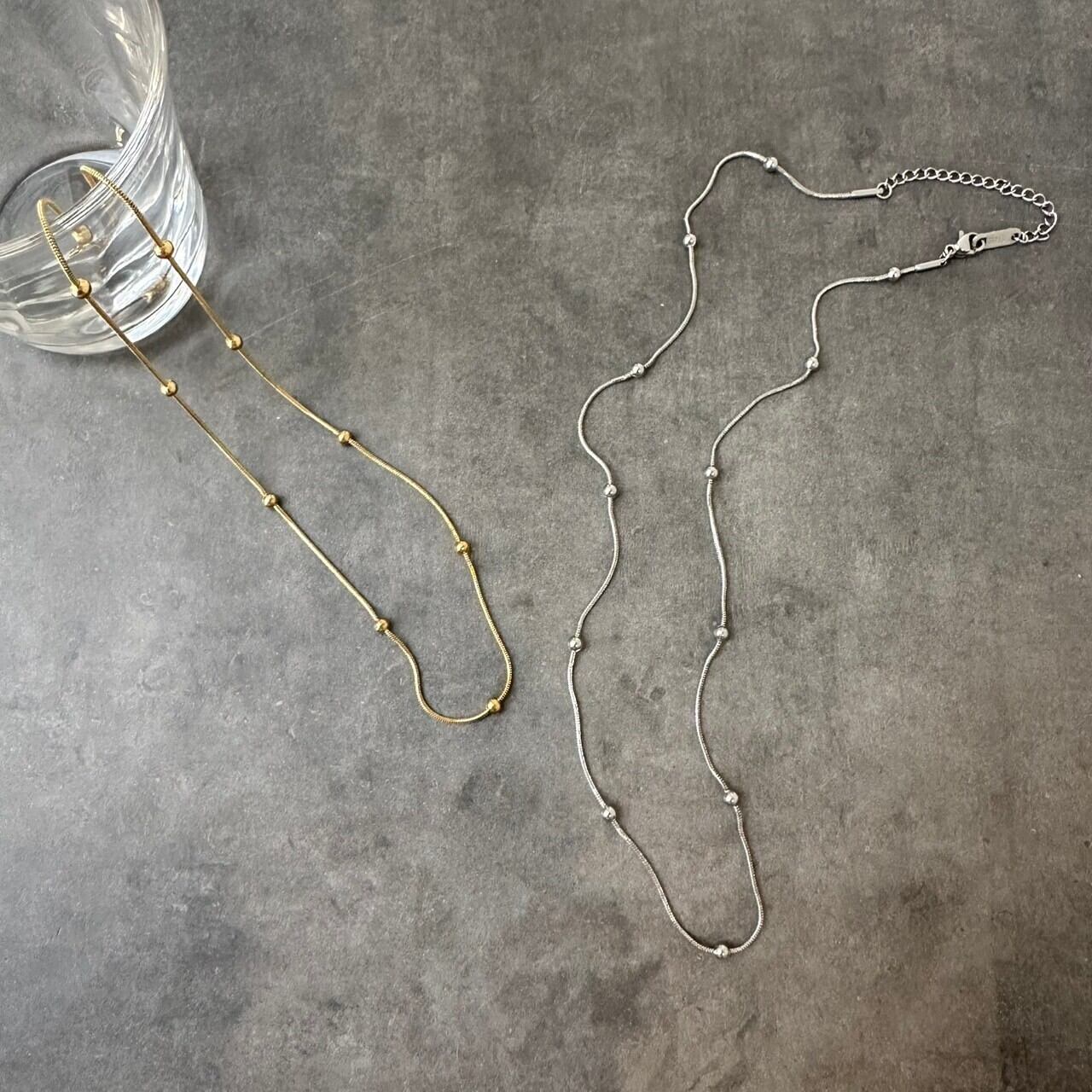 小粒ボールがシンプルで華奢なデザインのネックレス。