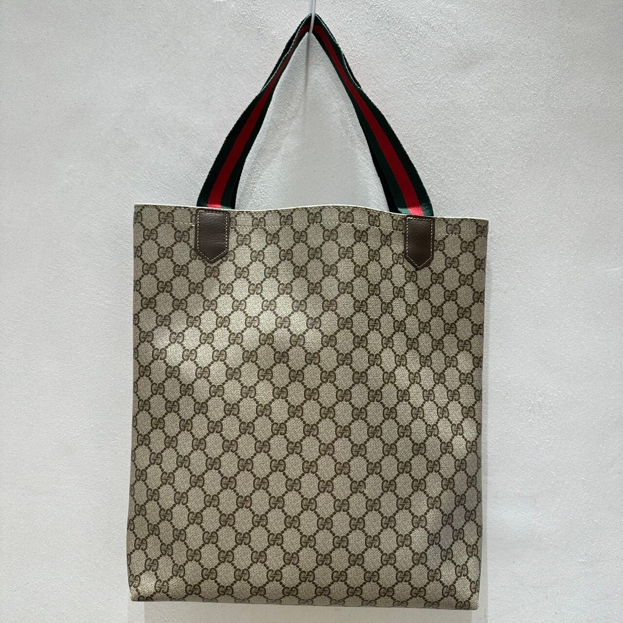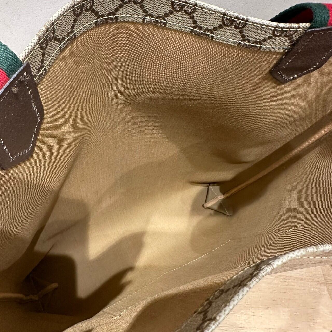 GUCCI定番のモノグラムが前面にプリントされたトートバッグ。