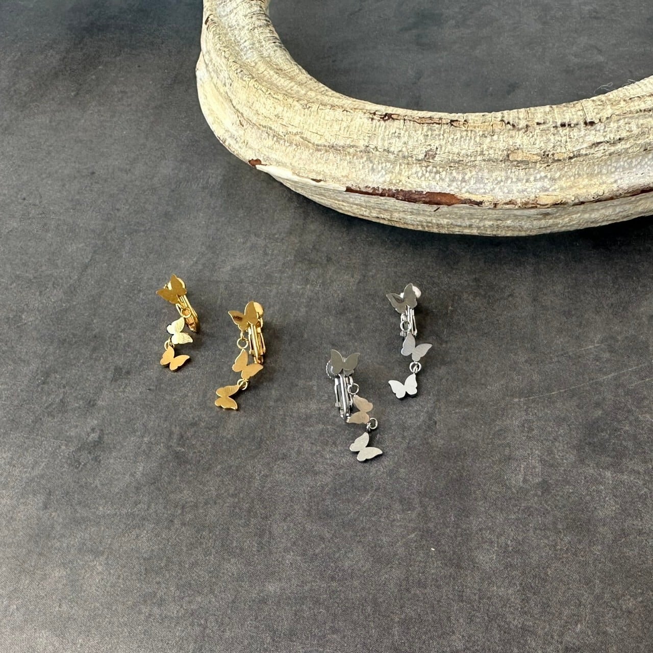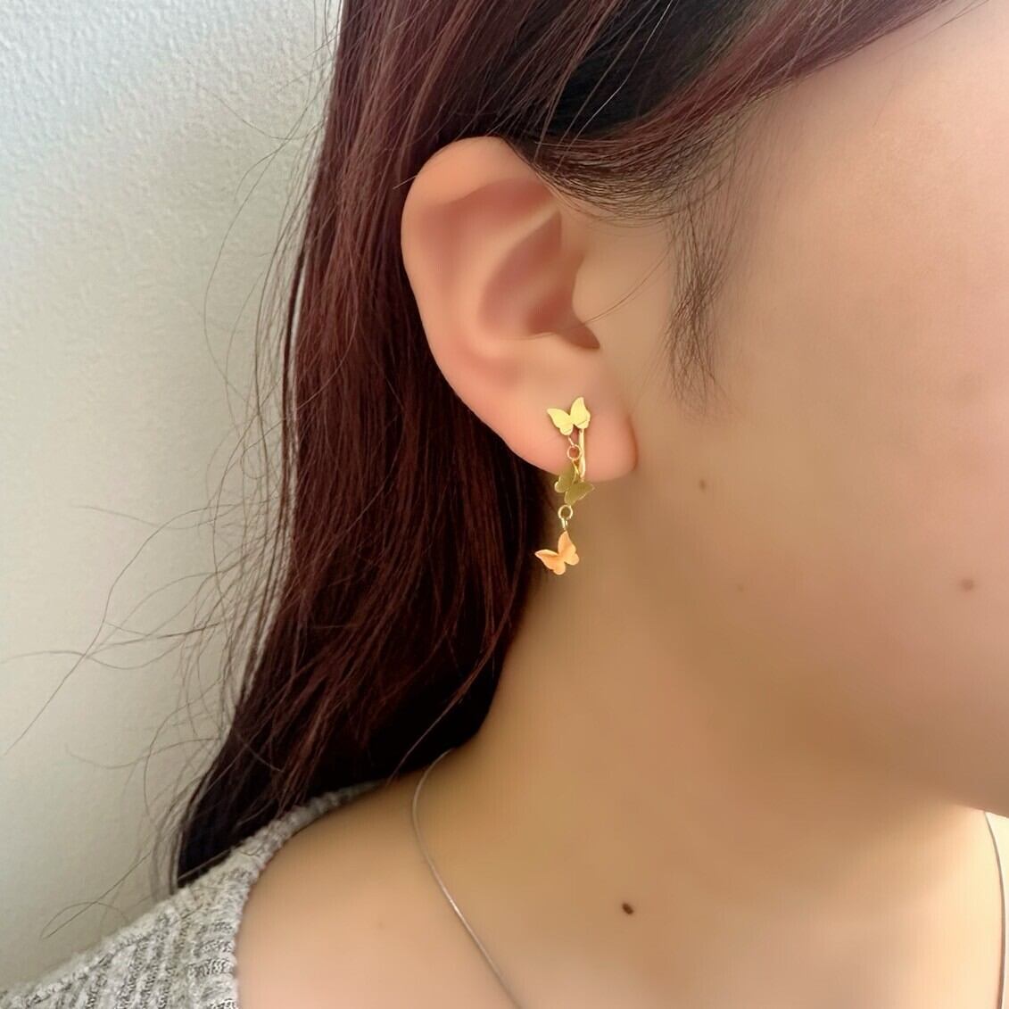 立体感のあるオリジナルの蝶の形や向きにこだわったイヤリング!