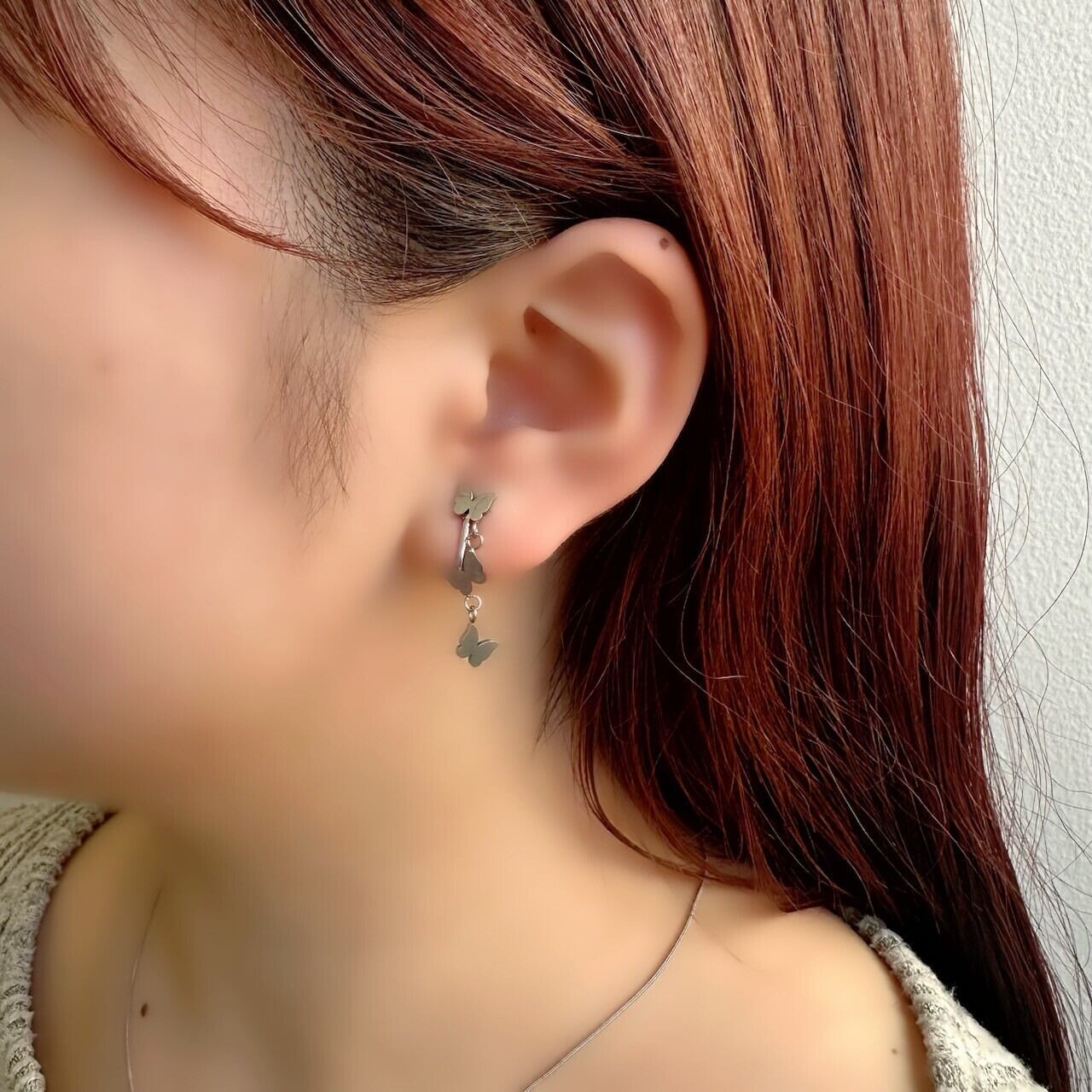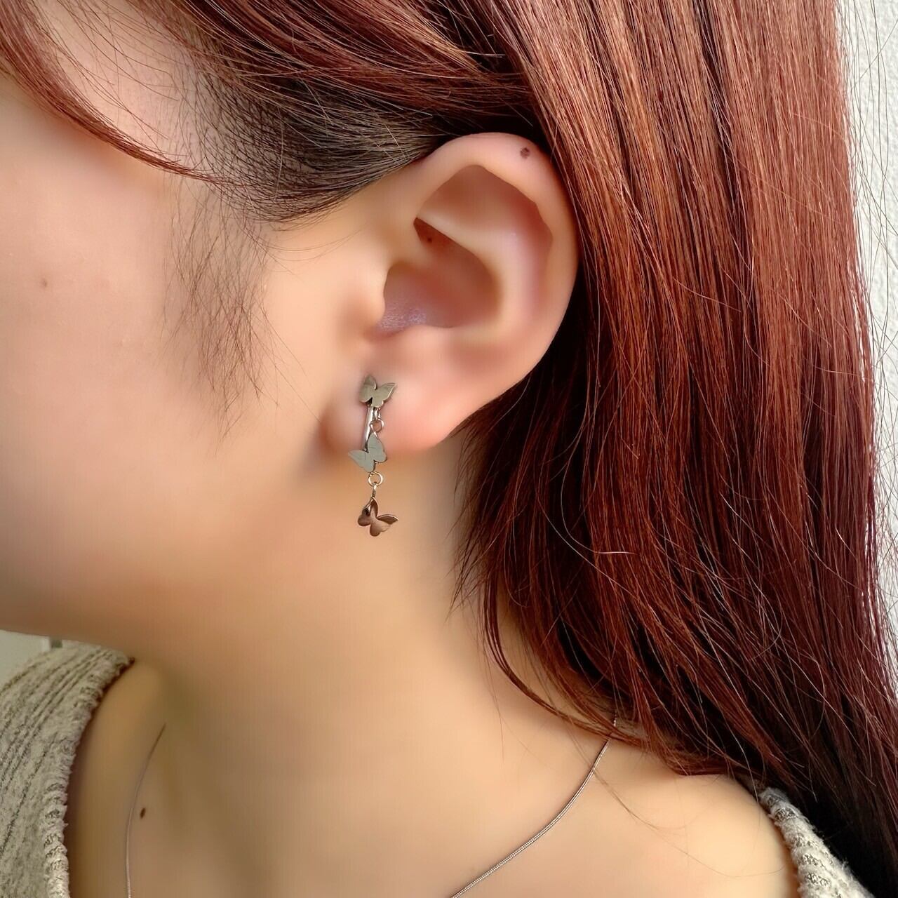 【金属アレルギー対応】バタフライ ロング イヤリング/サージカルステンレス